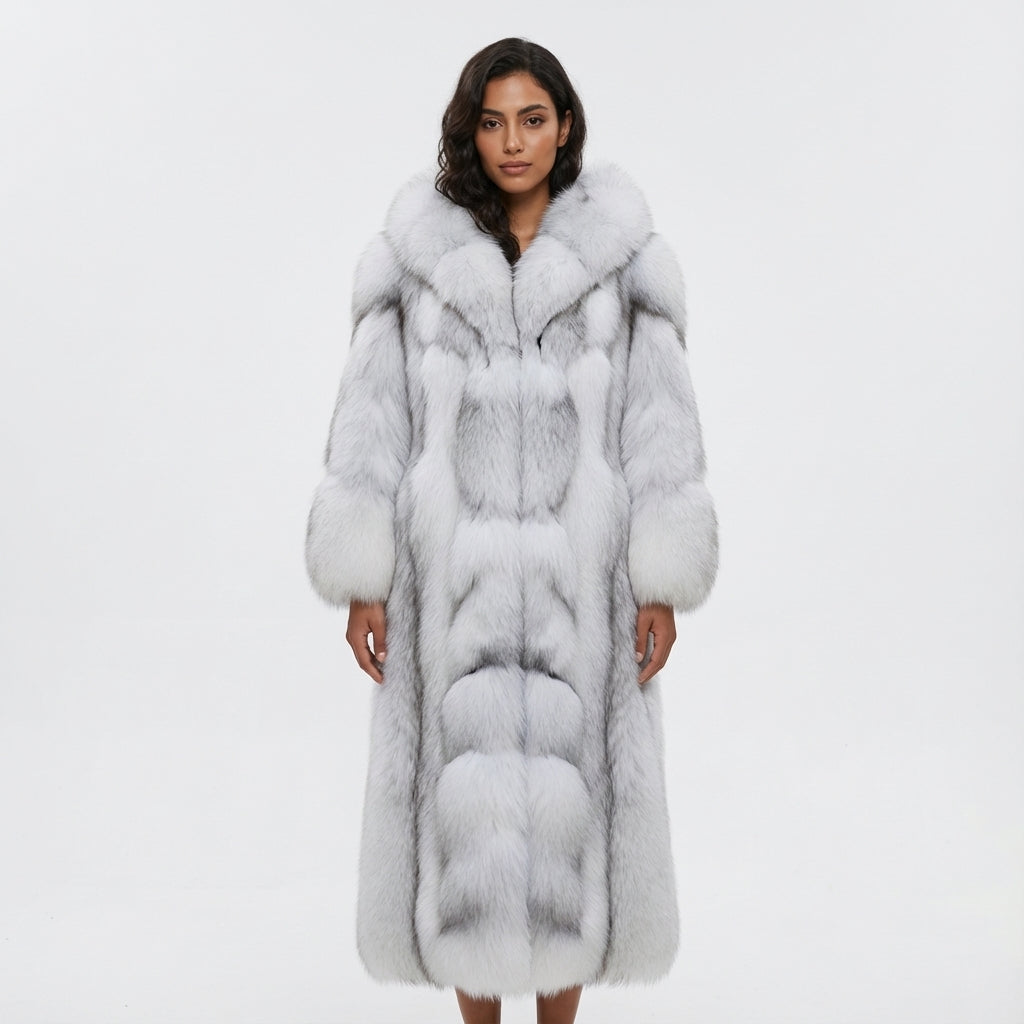 מעיל פרווה ארוך ואופנתי לנשים בצבע אפור, בעיצוב יוקרתי ומחמם. כולל קפוצ’ון לפרקטיות מלאה בימים הקרים, ומראה מרשים שמתאים ליום-יום וגם לאירועים חגיגיים. עשוי פרווה סינתטית רכה ואיכותית.