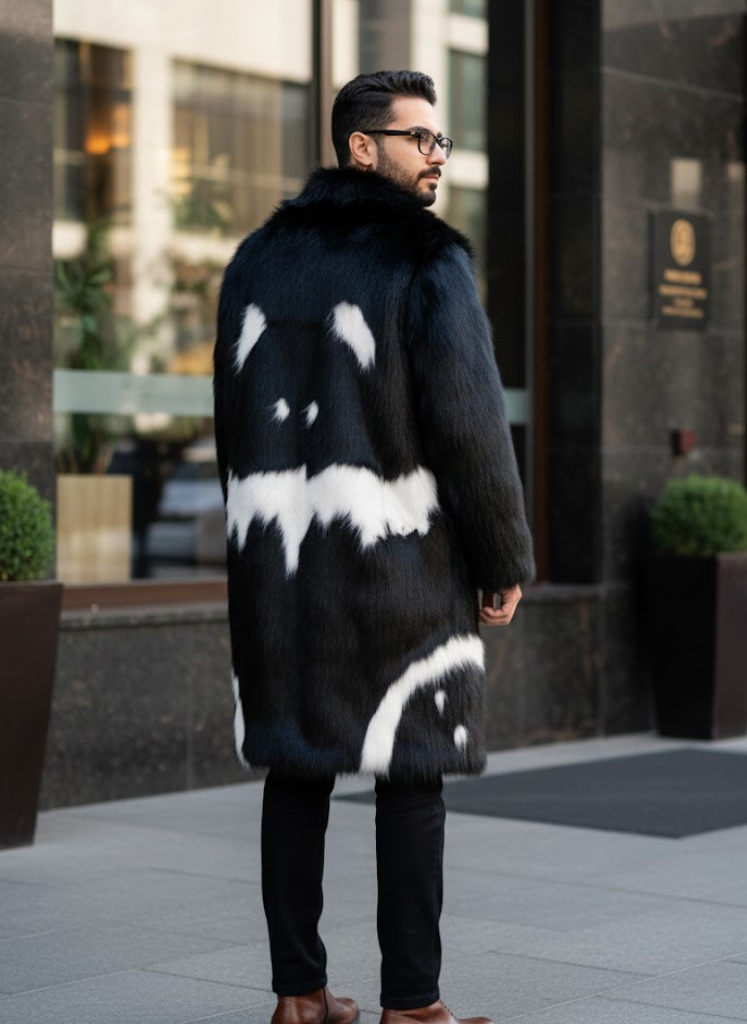 מעיל פרווה בעיצוב קונטרסטי לגברים
